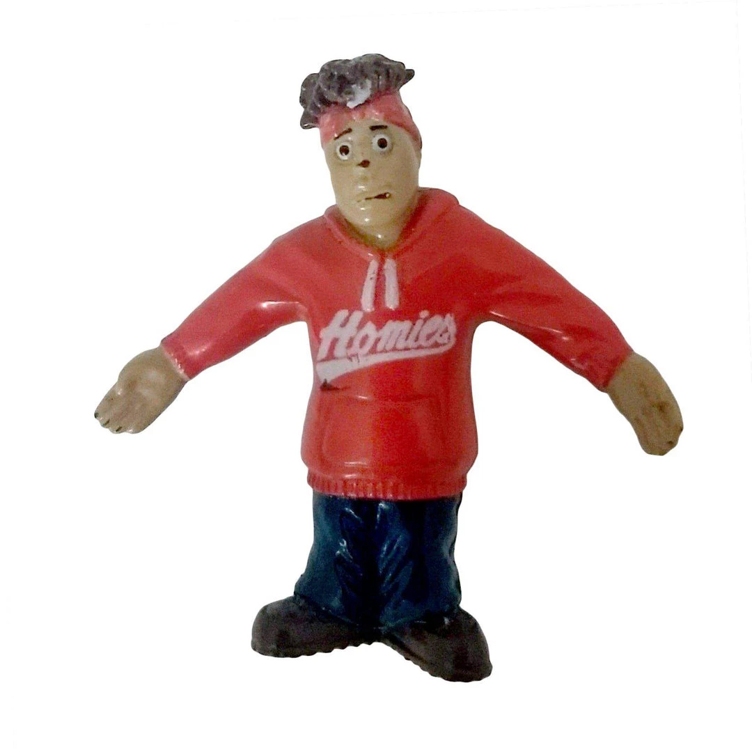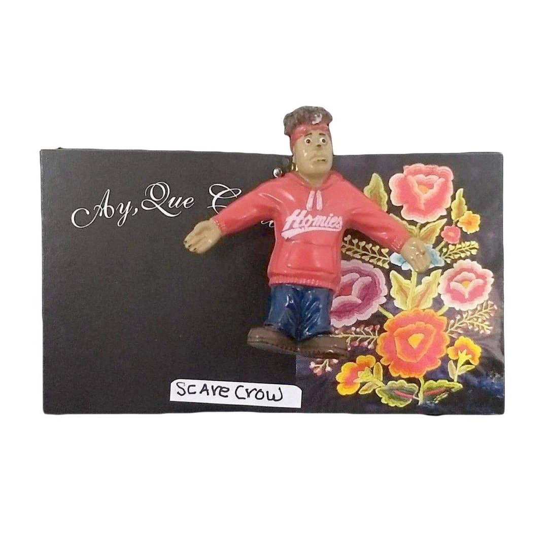 Get yourself some Homies fun with this original handmade pin! The small 2″ pin features a scarecrow Homie figurine, with his red hoodie, baggy jeans, and his hair splaying out the top of his head. Perfect to pin on your shirt, jacket, or bag. Now if he only had a brain!