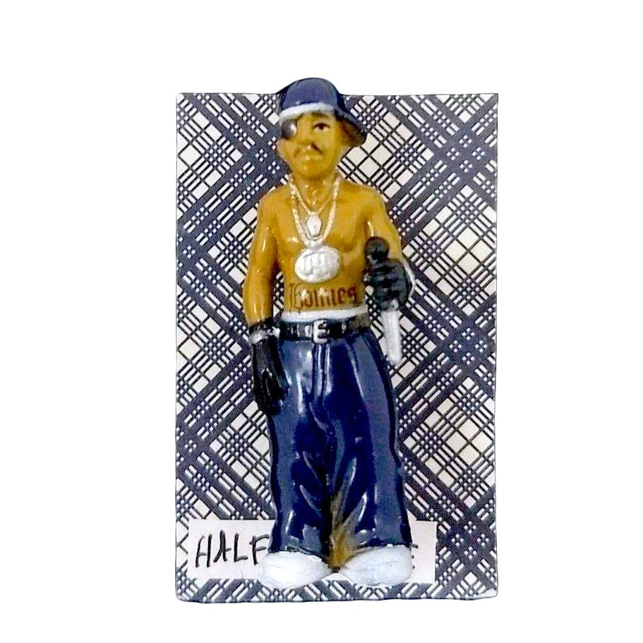 Get yourself some Homies fun with this original handmade pin! The small 2″ pin features a super fun Homie figurine tough guy with his bare chest, his eye patch, and his baggy jeans. Perfect to pin on your shirt, jacket, or bag. Street smart and savvy, he’s endearing enough to be the other half at home.