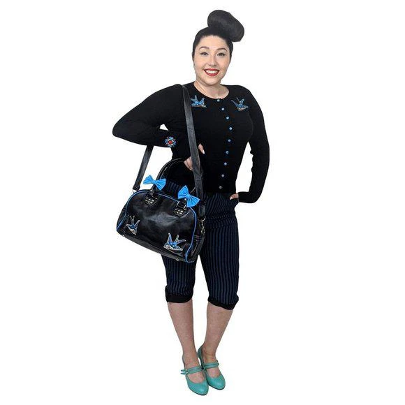 SKU: banned-6912604799143 Categories: Accessories, Banned Apparel, Purses, Bags, & Wallets, Shop By Brand Tags: Birds, Black and blue, Blue, Blue bows, Blue Swallows, Bows, Cf-size-os, Cf-vendor-banned