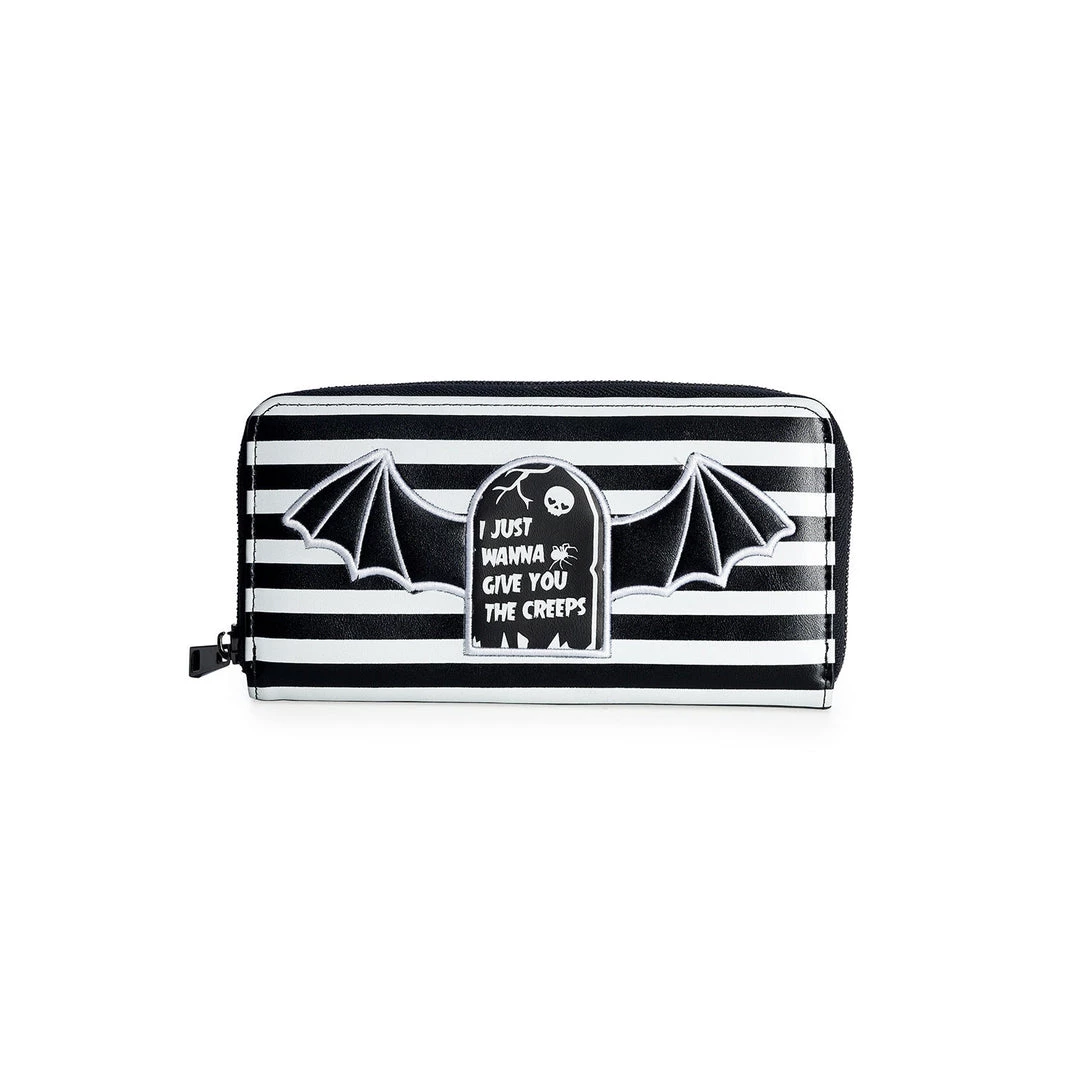 SKU: banned-7581269262580 Categories: Accessories, Banned Apparel, Purses, Bags, & Wallets, Shop By Brand Tags: Bat wings, Black and white, Cf-size-os, Cf-vendor-banned, Headstone, Stripes, Wallet