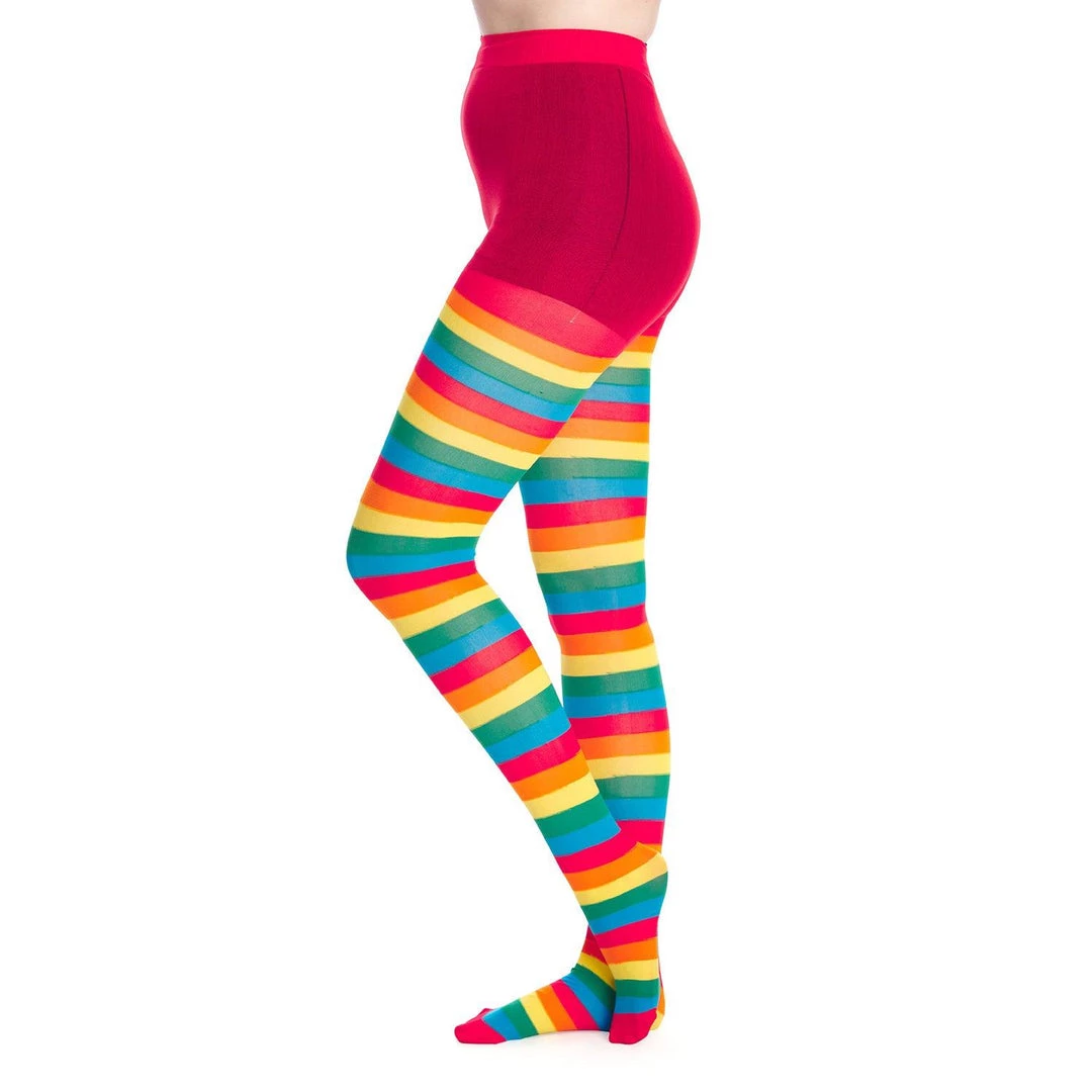 The jolly tights from Banned are jolly-good! They’ll make you feel like you’re over the rainbow, all the way to Oz when you wear these fabulous rainbow-striped tights! So freaking fun!!