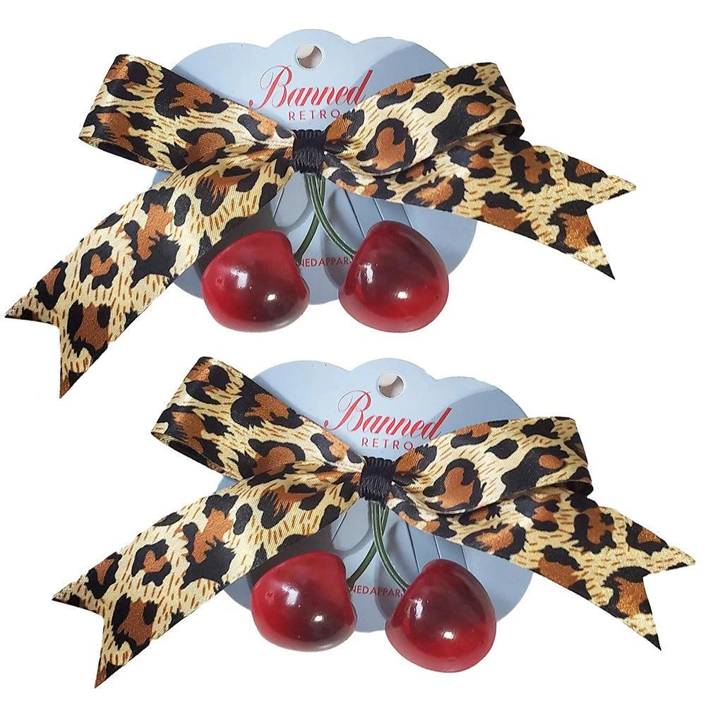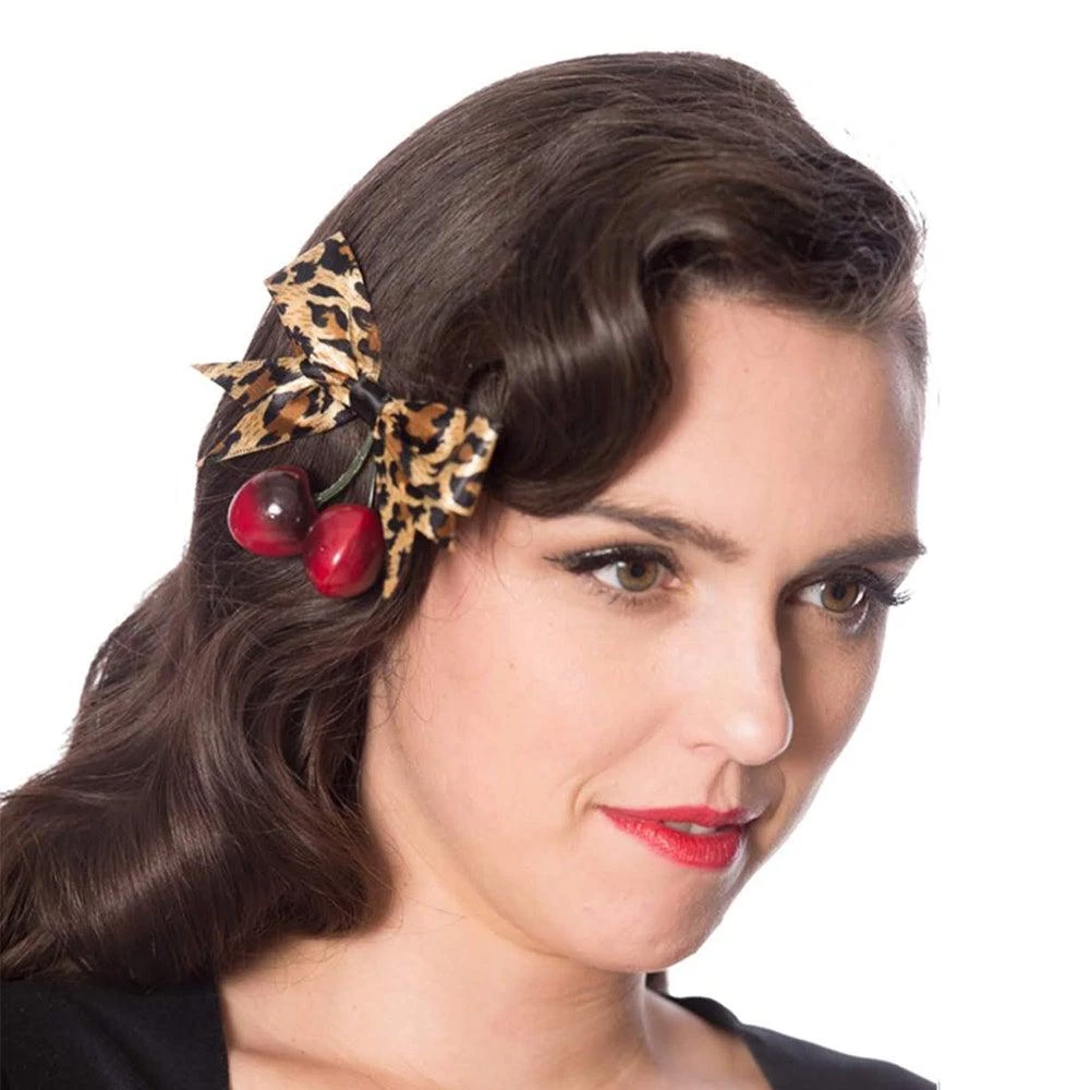 Add some rockabilly flair to any ‘do with Banned’s fantastic cherries hair clip! Measuring about 5″ in length, this barrette has a silver-toned alligator clip attached to the rear of the bow for easy styling. The perfect finishing touch for any outfit!