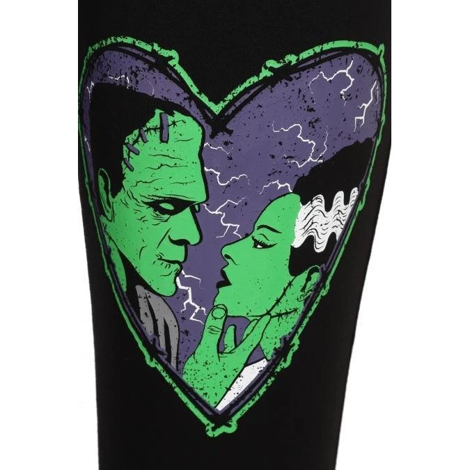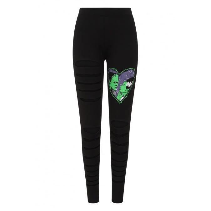 These super comfy leggings from Banned are simply “made for” perfecting your Halloween-is-every-day wardrobe! The slashed leggings are black with the Banned signature Frankenstein and Bride patch on the left front thigh. So freakin’ fun!!