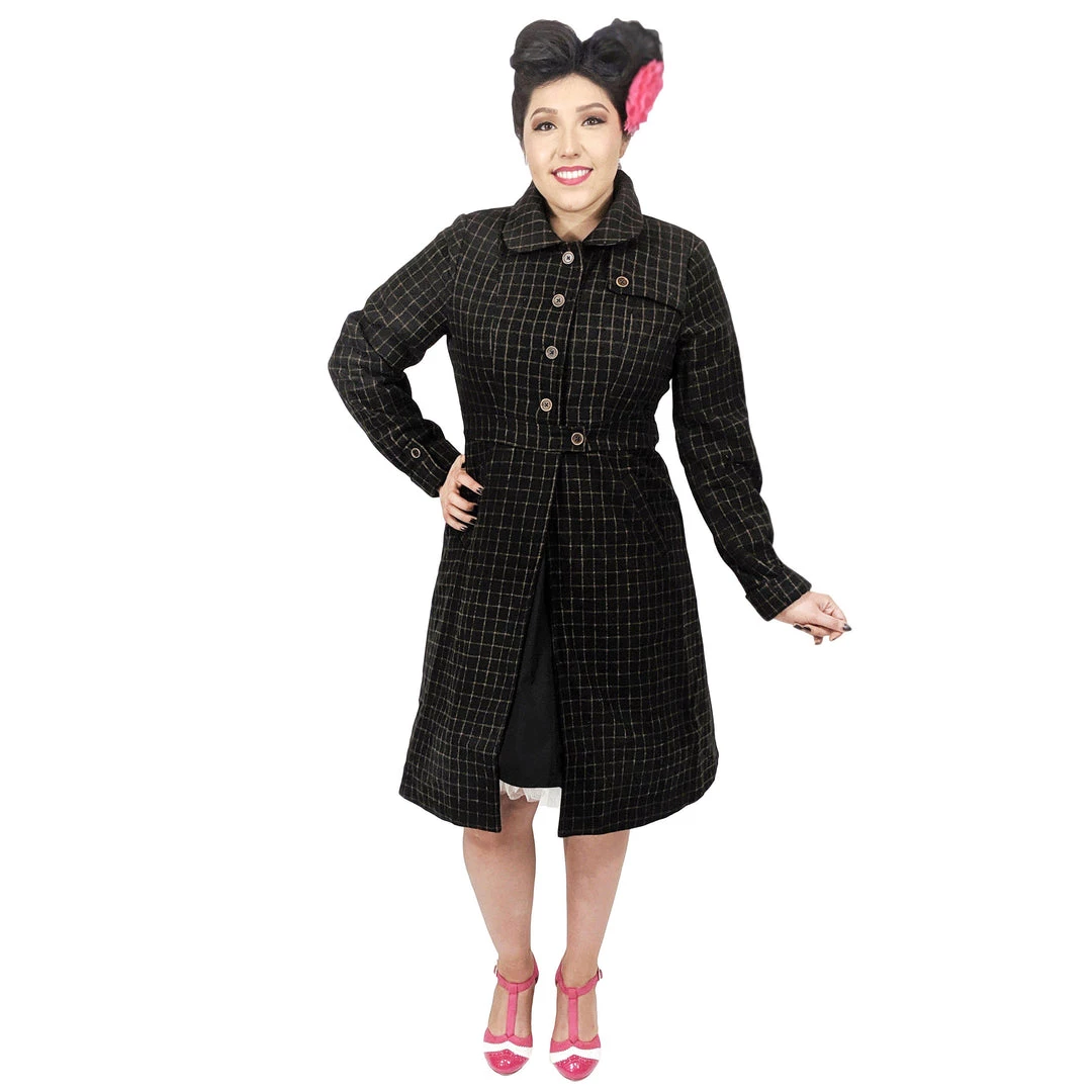 It’s elementary, my dear girl–this coat from Banned Apparel is the bomb for winter outings! A vintage-style trench coat, it is made of a warm poly-wool blend in a beautiful black and brown check. “Never trust to general impressions, but concentrate yourself upon the details” –such as gorgeous wooden buttons, brown satin lining, cuffs buttoned with flaps, a center-back button-down flap, two front flap pockets, and a singular front left button-down flap. Absolutely stunning!!!