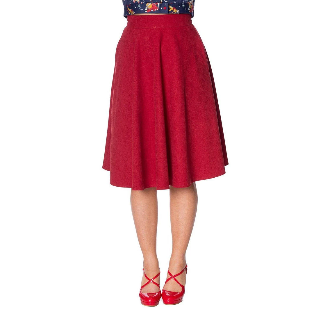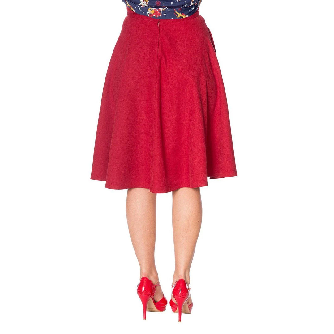 The Sophisticated Lady Swing Skirt from Banned Apparel is the perfect retro skirt! A full swing skirt that sits high on your waist creating a vintage feminine silhouette. The skirt comes in a wonderful red with deep pockets. There is a hidden zipper up the back. Create a gorgeous sophisticated pinup look with this fantastic skirt!