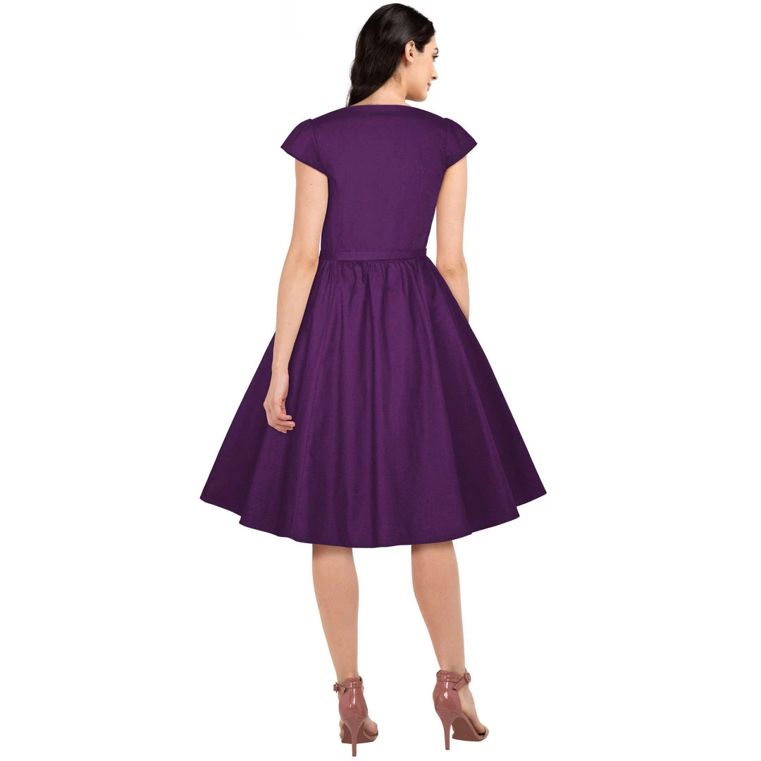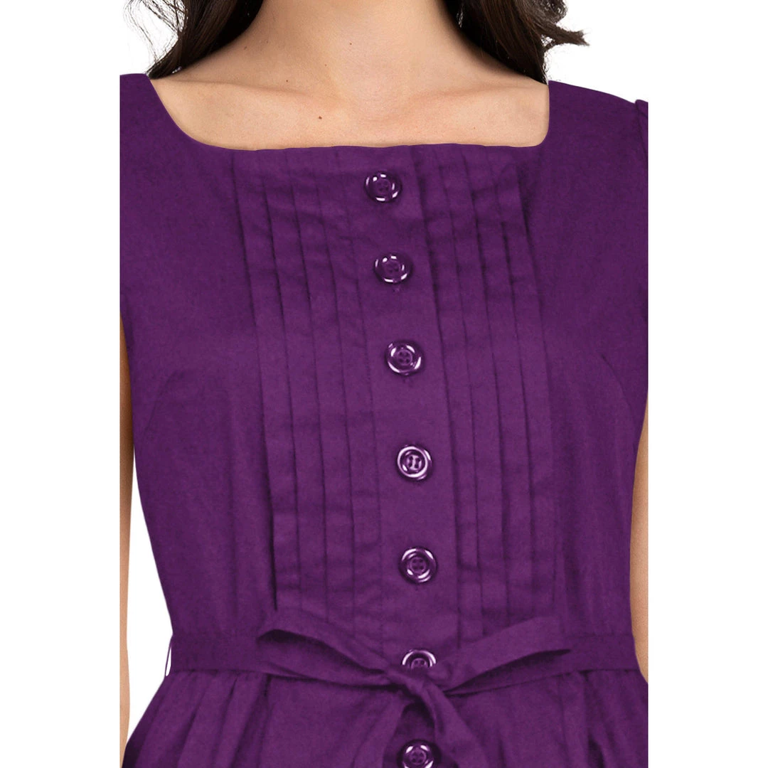 This oh-so-gorgeous black dress features pleating in the center of the dress. The buttons down the front are functional to slip in and out of the dress, and a lovely tie belt completes this simply sweet look.