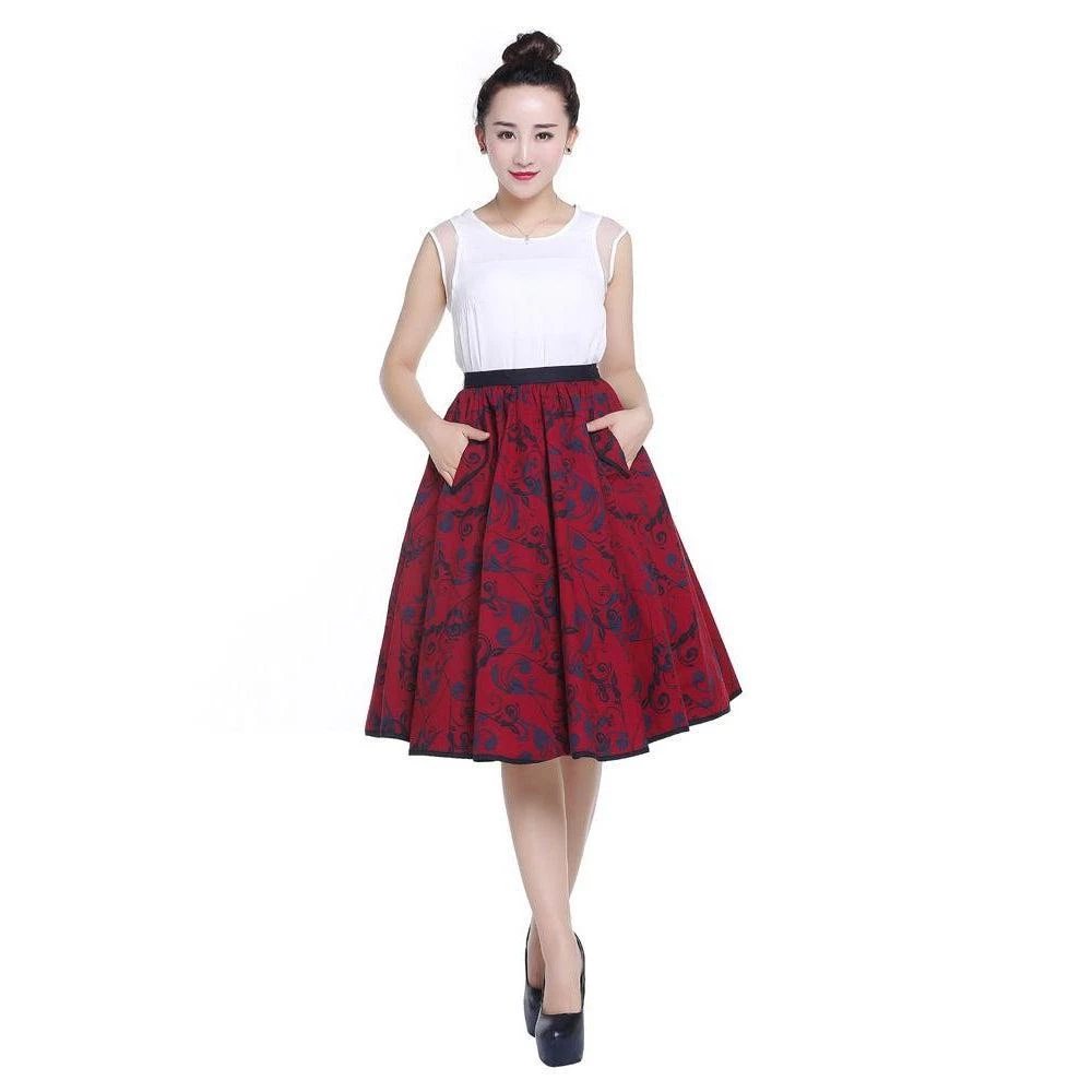 SKU: chicstar-7459038101748 Categories: Bottoms, Women's Apparel Tags: Cf-size-3x, Cf-vendor-chicstar, Pockets, Print, Red, Retro, Skirt, Swing