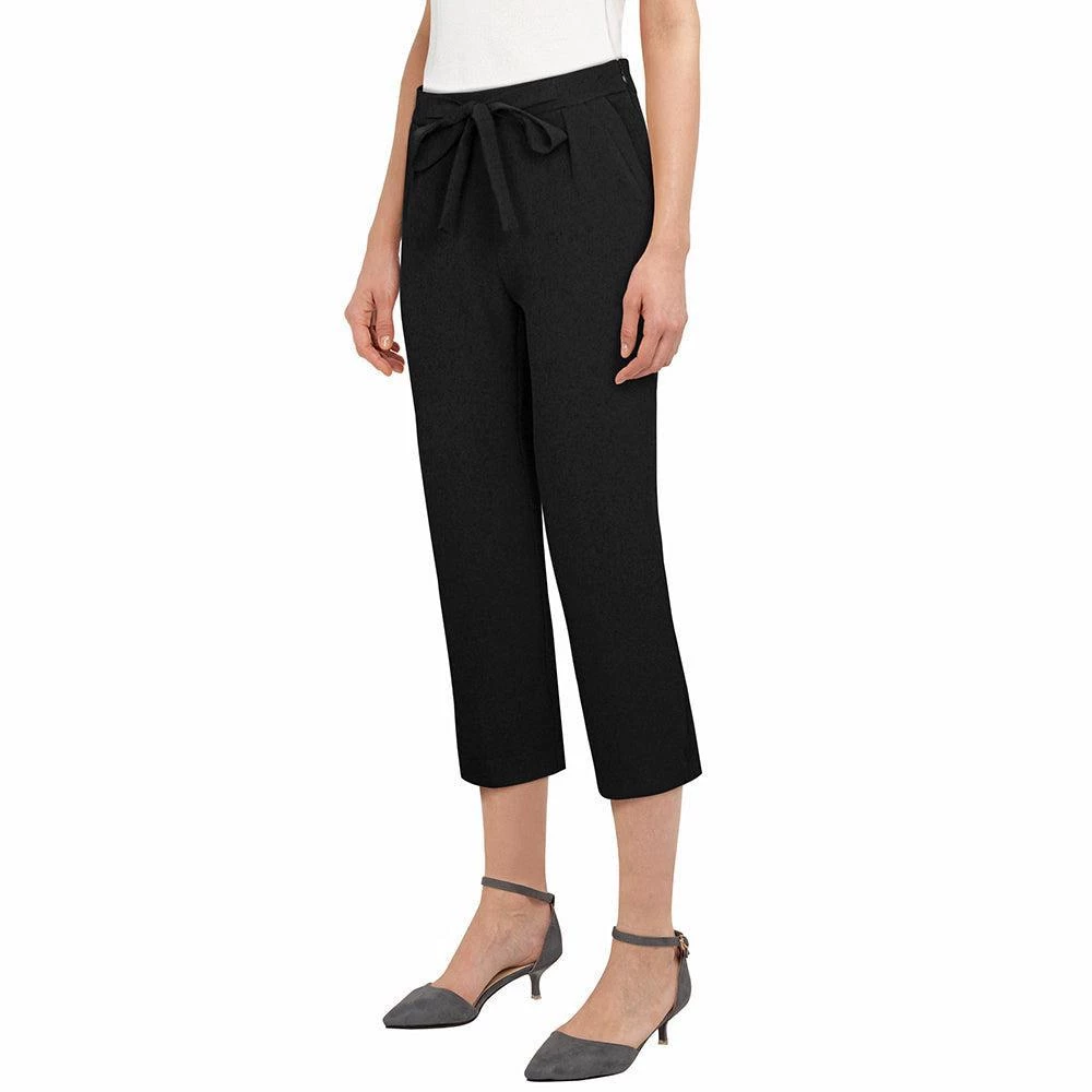 Stroll into summer in these breezy cropped tie-waisted pants! Pair them with your favorite peasant top or pinup blouse for a perfect summer look. Side pockets, side zip, and attached tie belt.