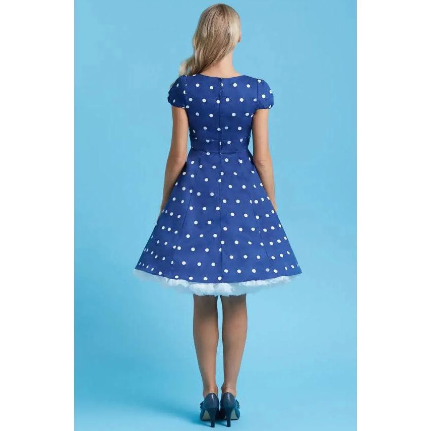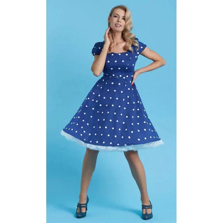 Be the first to review “Dolly & Dotty Claudia Swing Dress In Blue With White Dots” Cancel reply