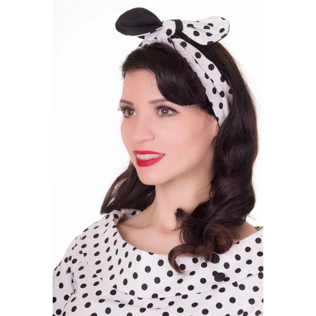 SKU: dolly-dotty-7676925411572 Category: Accessories Tags: Black, Bow headband, Cf-size-os, Headband, Headscarf, Polka dot, Retro, White