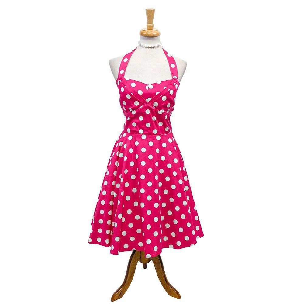 This eye-catching halter dress from Eva Rose has a unique sweetheart bustline with v-shaped tucks layered over the top, hidden bra cups for a little extra help, and a full swirly skirt that’s just asking you to take it for a twirl! The elasticized back top edge and adjustable halter strap combine to help you find your best fit. Side seam pockets, rear zip.