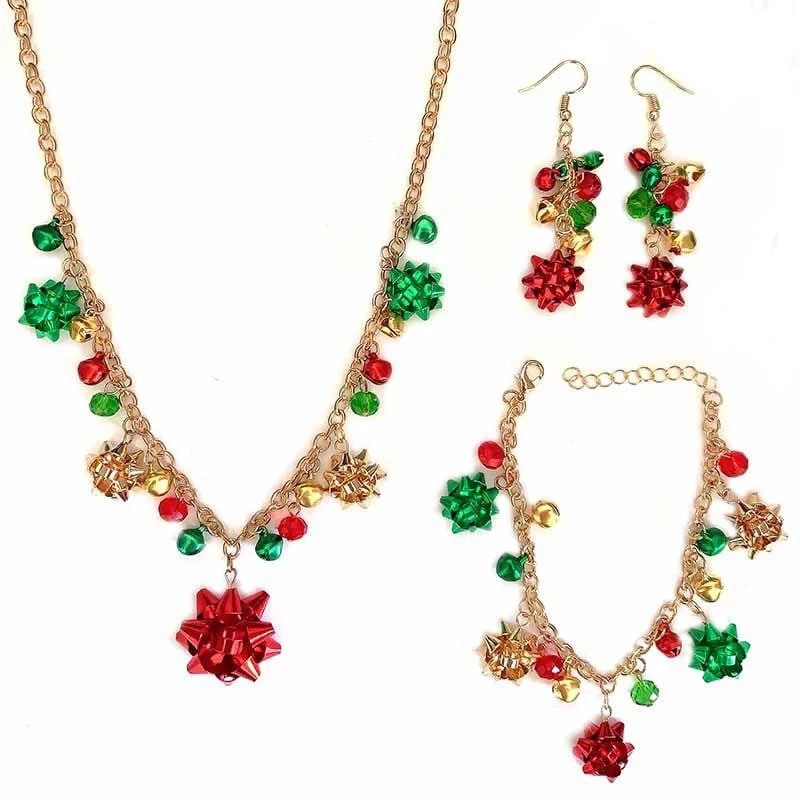 Wrap yourself up like a present in this festive gold-toned holiday jewelry set! It includes a necklace adorned with variously-sized bows that adjusts up to 21” in length, a bracelet bedecked in bows & bells that fits up to 9” in length, and a pair of french hook bow earrings to show your festive spirit for all to see!