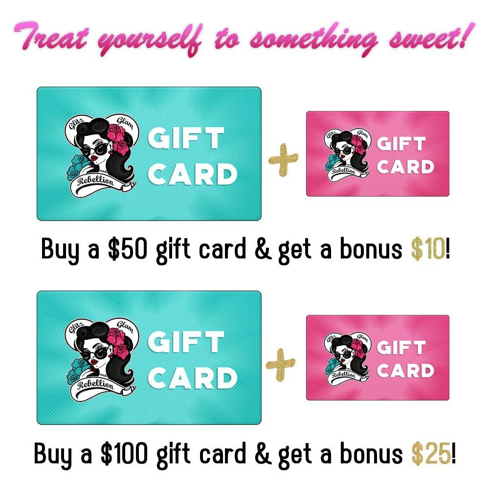 Give the gift of choice with a Glitz Glam and Rebellion gift card.