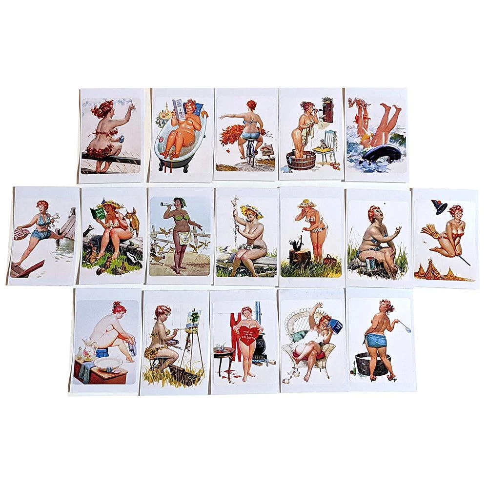 Meet Hilda, the cheeky curvy pin-up character who stole hearts and sold calendars in the ’50s & ’60s. This set contains 17 saucy pinup stickers – save your favorites and share the rest with friends, or keep them all for yourself! The stickers measure about 2.5″ tall by 2″ wide, and each set contains the 17 images shown below.
