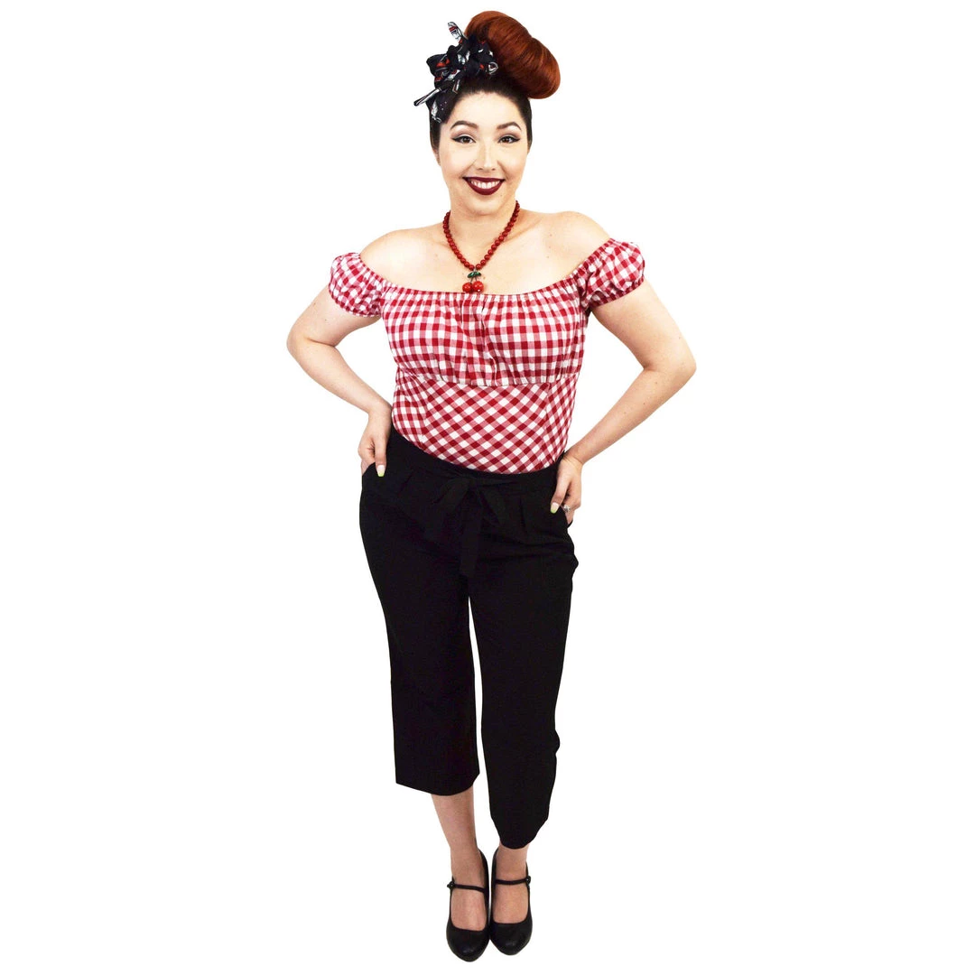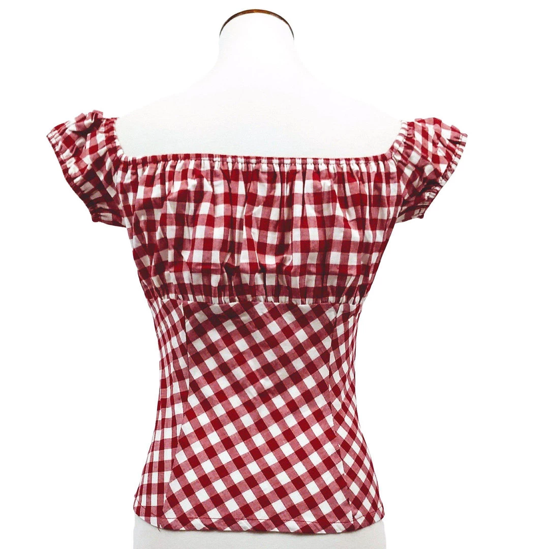A peasant blouse is the PERFECT addition to any pinup outfit with its simple, classy look. Pair it with your favorite capris, pedal pushers, or circle skirt for a romantic retro look. Picnic-perfect in red and white gingham checks.