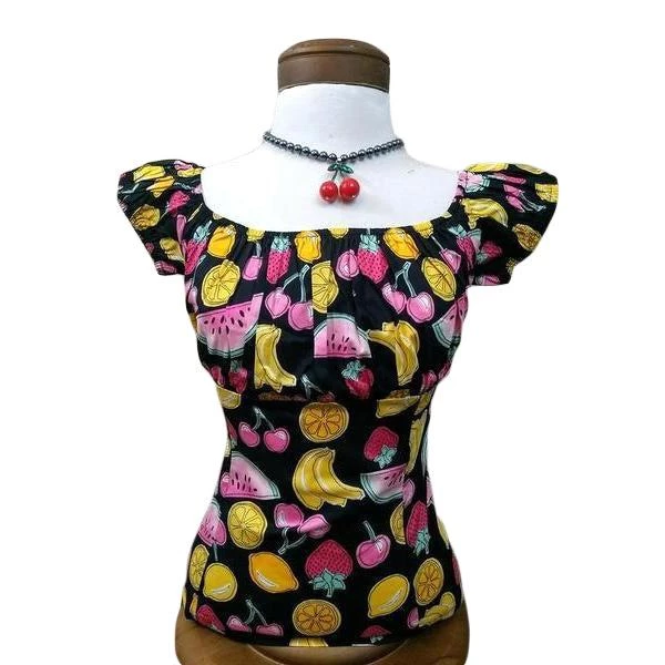 A peasant blouse is the PERFECT addition to any pinup outfit with its simple, classy look. Pair it with your favorite capris, pedal pushers, or circle skirt for a romantic retro look. It can be worn on or off-the-shoulder. Zips on the side for easy on and off.Â