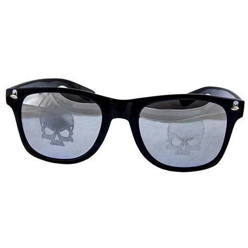 Take a wicked ride on the wild side when you wear these sunglasses with a skeletal shade about them! They are made in a classic retro square shape with a skull floating on each of the dark lenses, tiny skulls at the top corners, and skulls down the earpieces.