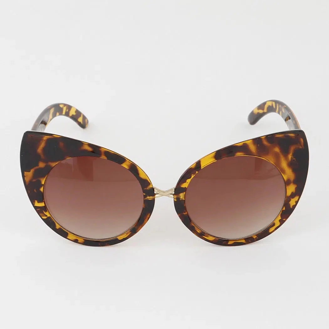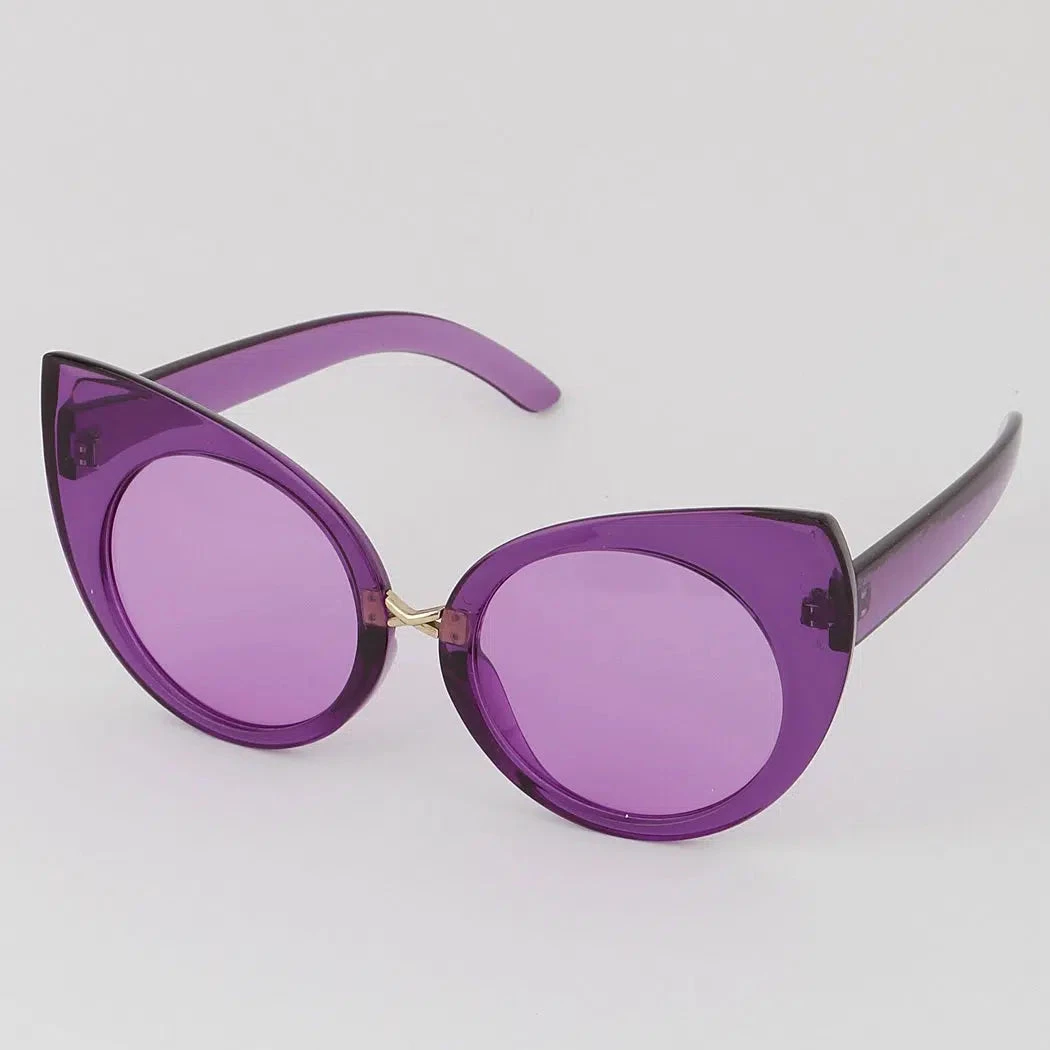 Here’s a stylish mid-century meow! These fantastic shades have large cat-eye frames in six colors, tortoise, white, pink, purple, red, and black. The lenses are superbly matched to the frames and darker at the top.  What’s new, pussycat?