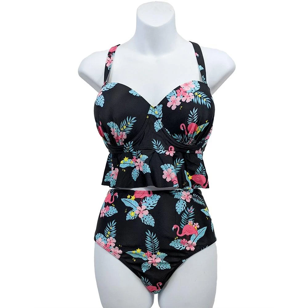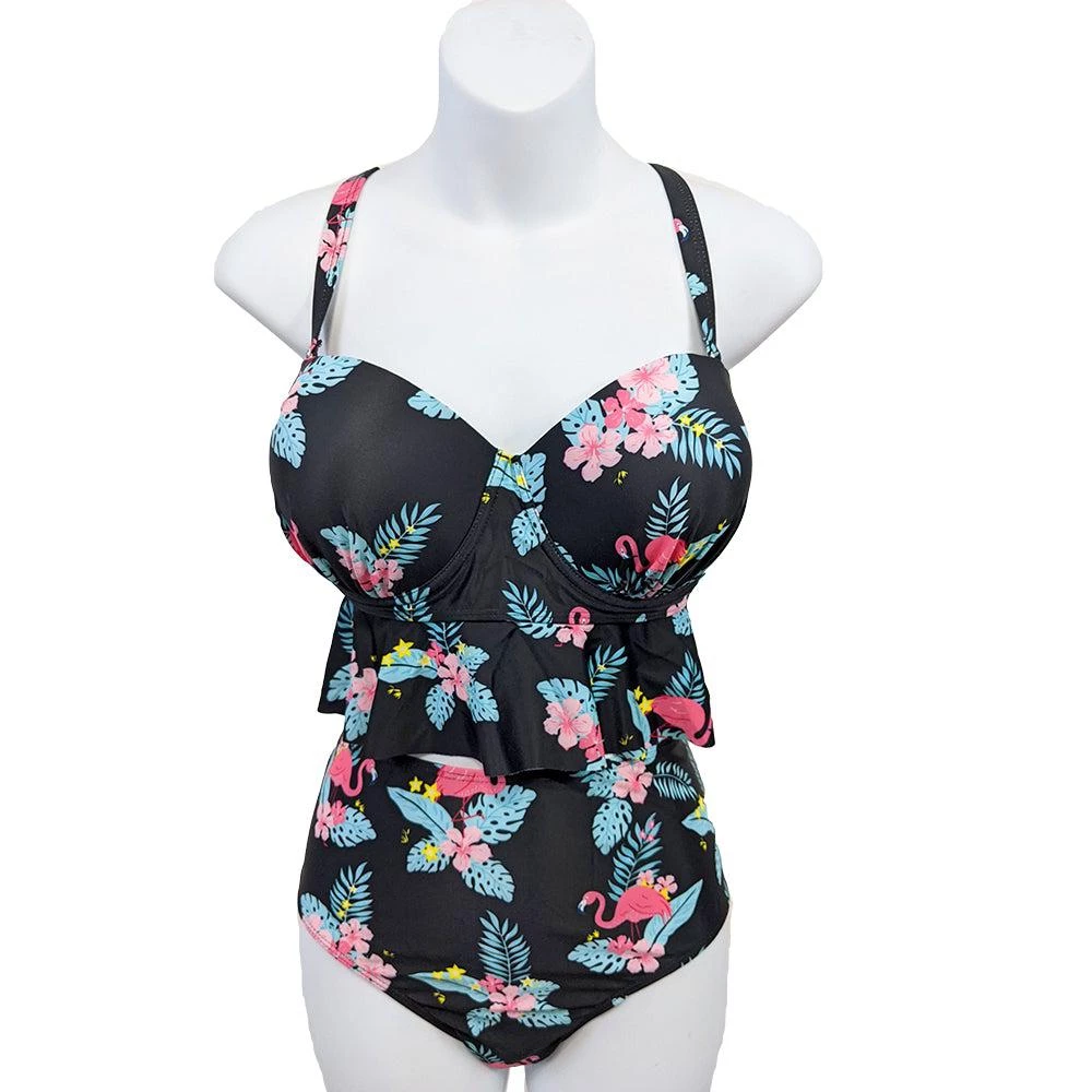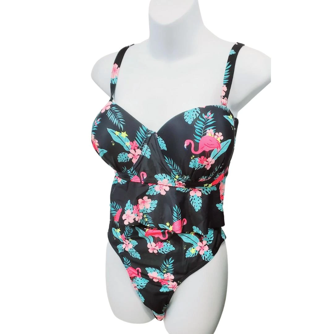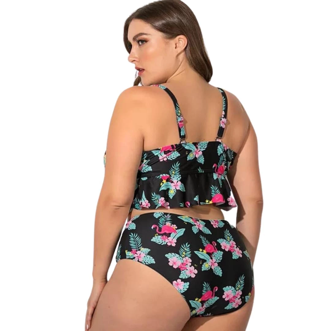 This Tiki Flamingo two piece is sure to bring joy to your summer outings! This set includes high waisted bottoms that perfectly complement the fully structured and supported top with adjustable straps.