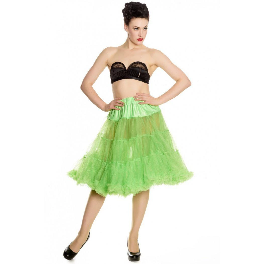 This 3 tier petticoat features a button-adjustable elasticated waistband that is very stretchy, allowing you to customize the fit to your specific measurements. It has 2 layers on each tier which makes it extra full, plus a sweet ruffled edge on the hem that you can let peek out under your favorite 50’s style dresses! Â