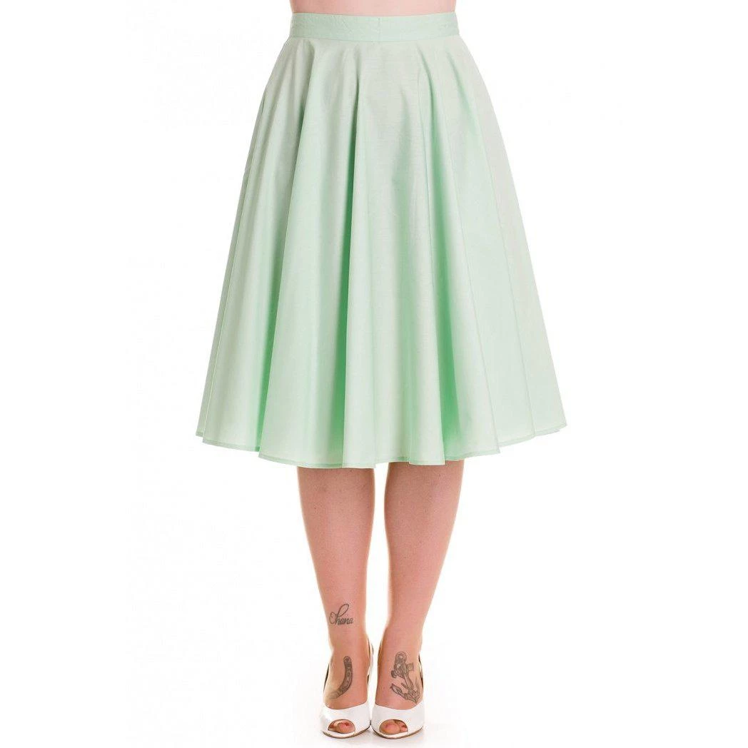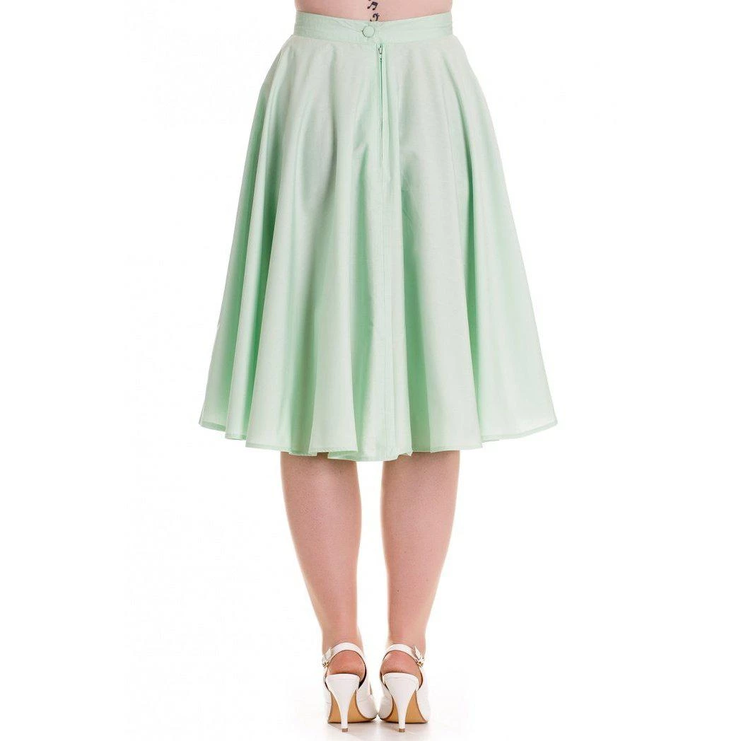 Swing out in fabulous 50’s style wearing this circle skirt in pale mint green. It is lightly gathered onto the waistband, zips up the back, and closes on the waistband with a fabric-covered button. Â
