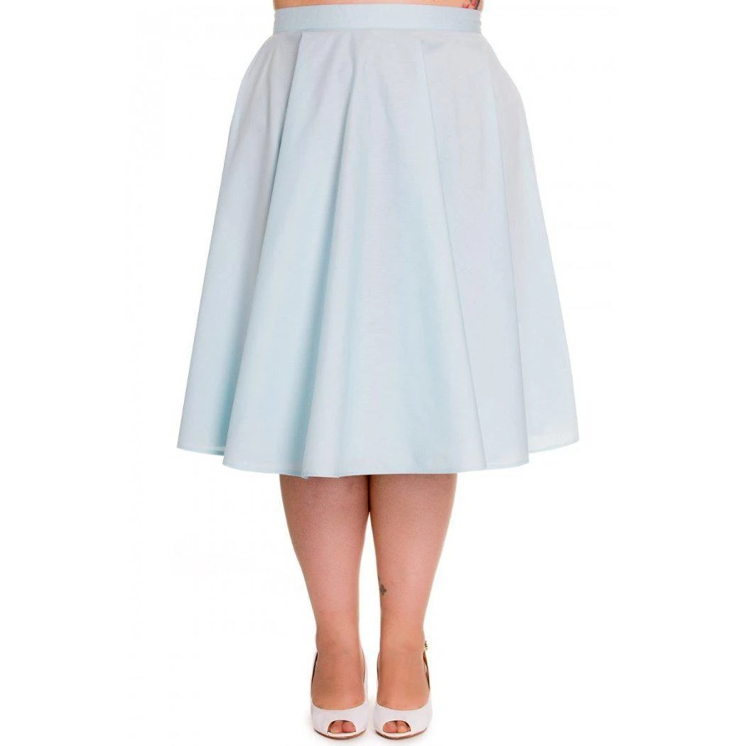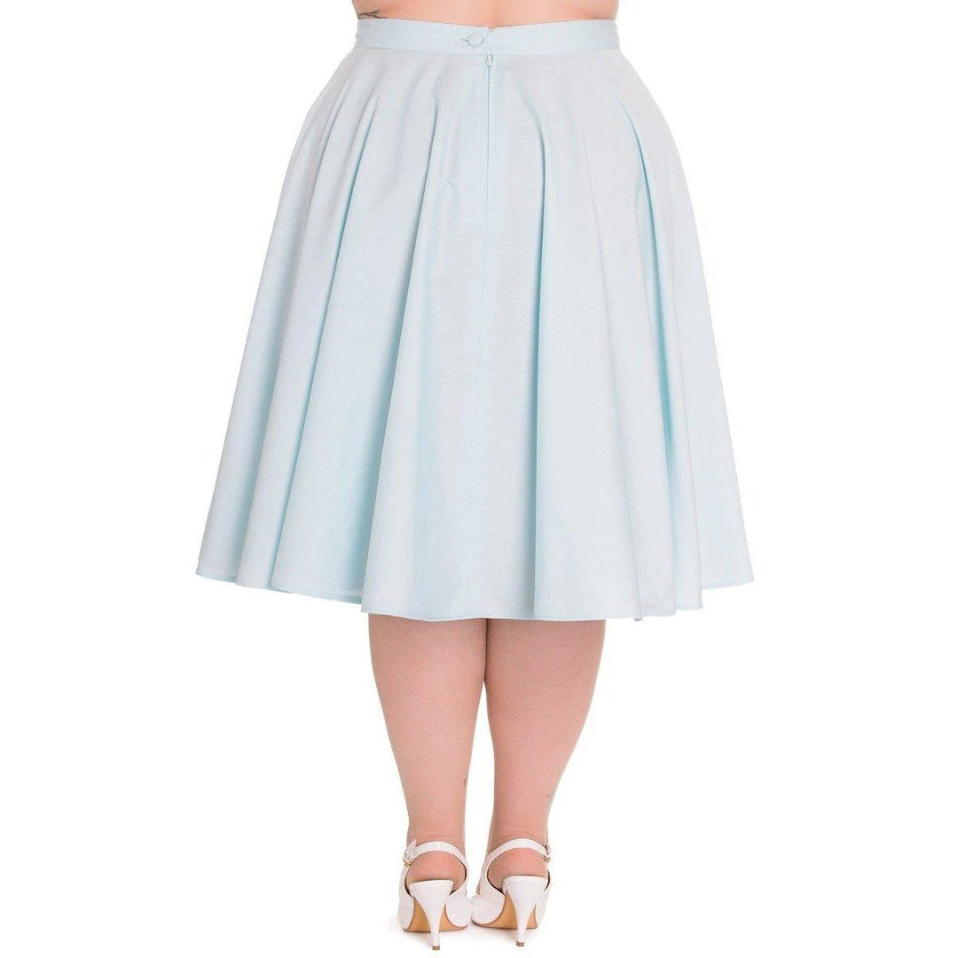 Swing out in fabulous 50’s style wearing this circle skirt in a soft pale blue. It is lightly gathered onto the waistband, zips up the back, and closes on the waistband with a fabric-covered button. Â
