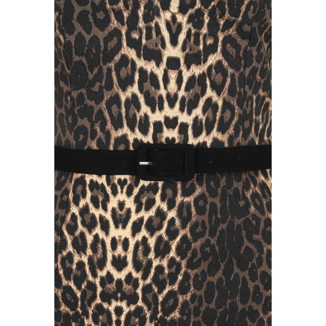 - Leopard printed pencil dress with black collar