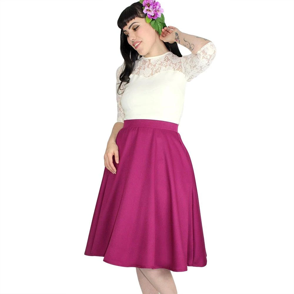 The lacey white top from Hemet features lace around the shoulders and arms, a round neckline, thick material at the bottom, a sweetheart cut at the front, a flattering keyhole at the back, three quarter sleeves, and an overall romantic look. Perfect with circle skirts for special occasions or every day wear.
