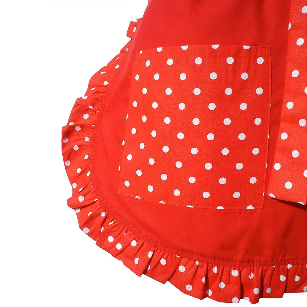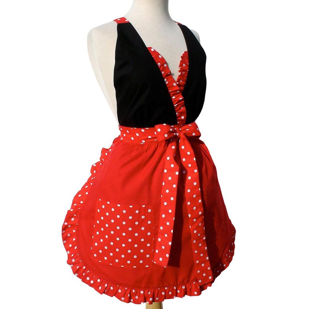 This chic and sassy apron features a classic polka-dot print and sweet ruffles on the trim. Easily adjusts to suit every sweetheart, and the deep pocket comes in handy when juggling crafts and cooking.