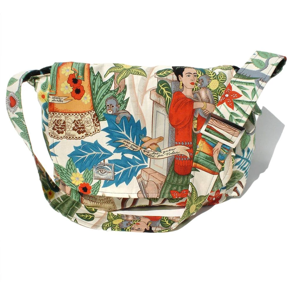 This colorful Frida Kahlo-inspired messenger bag from Hemet features gorgeous tropical plants and curious monkeys.