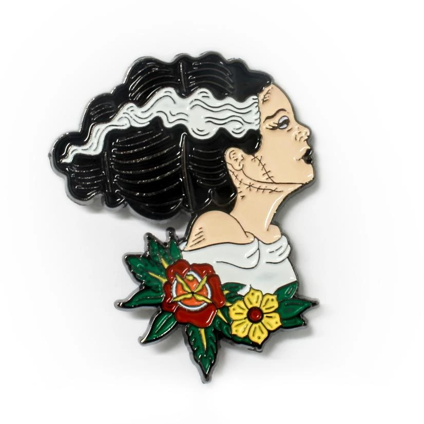 When joined with the Frankenstein pin, both appear as if locking eyes. A perfect gift for Her to match His. (The Frankenstein pin is sold separately.)