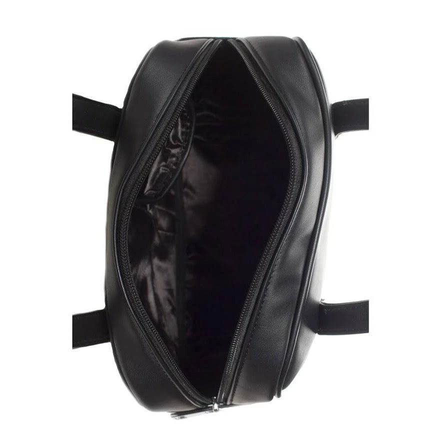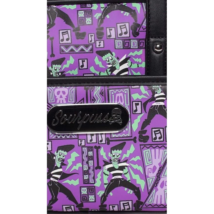 Watch that monster go, go, GO! This fun, Frankie A Go Go Mini Bowler Purse features artwork by Kelly Migliori in a monster-approved colorway of purple and green. This mini bowler purse features pockets for organization, a sturdy handle, and enough room for your essentials – all in a perfectly-sized package! This fantastic purse has a matte vinyl with a satin lining and protective metal feet.
