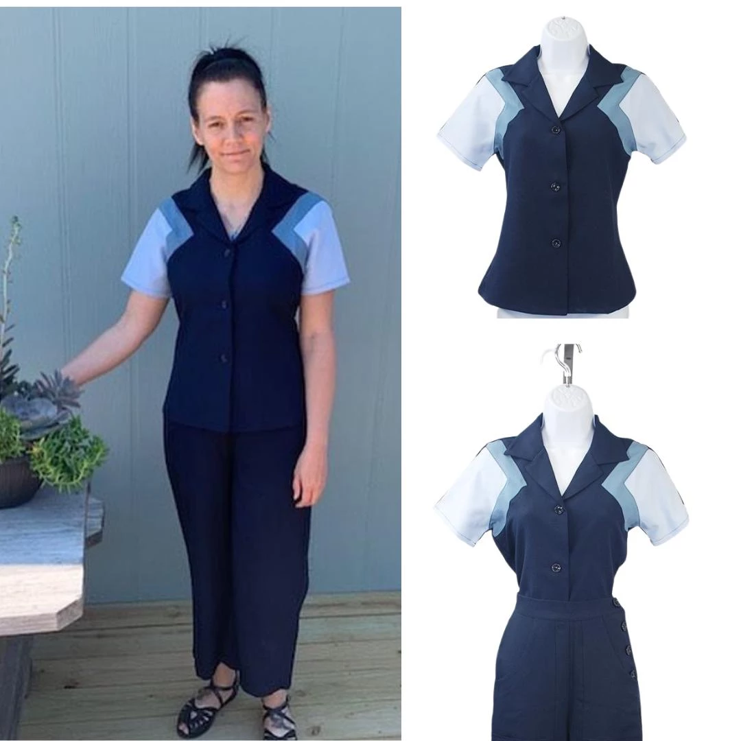 Be the first to review “Star Struck 40s Tri-Tone Short Sleeve Work Blouse In Navy” Cancel reply