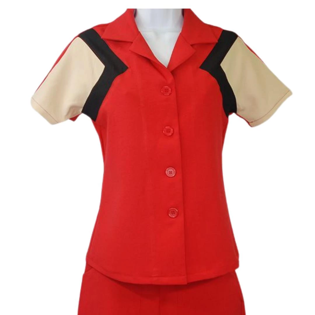 The Tri-Tone Short Sleeve Work Blouse from Star Struck is the ultimate in mid-century attire! Featuring short sleeves, a fold-over collar, and a button-up front, this blouse is gorgeously designed in red, tan, and black. Check out Star Struck’s fabulous wide leg capris, designed as a perfect companion piece for this blouse.  The sportswear styling works beautifully with high-waisted jeans, as well. Add a rockabilly tie-on headscarf to create a fabulous vintage-inspired outfit!