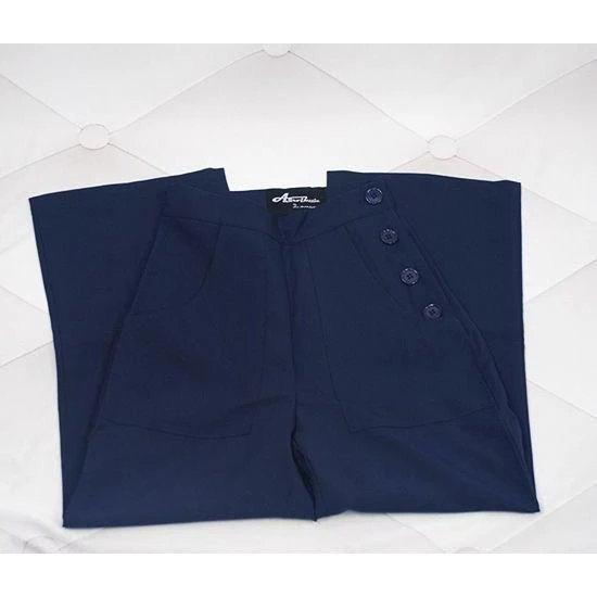 Star Struck’s Reproduction 1940s Wide Leg Culottes feature a 4 button side closure and deep front pockets. They were created using an original sample in Star Struck’s 40’s archive!