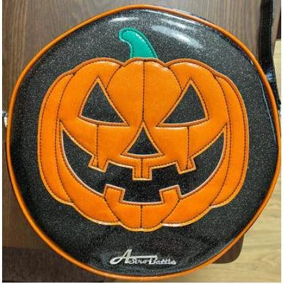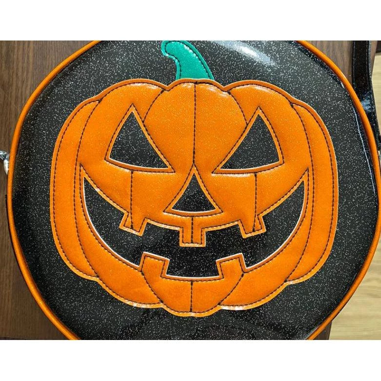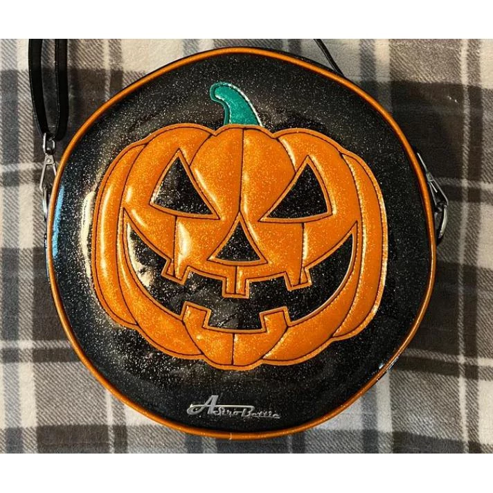 Everyday is Halloween when you carry Jack along! The Meet Jack! round handbag from Star Struck features a plump, glittery Jack-O’-Lantern on both sides against a glittery midnight black background. It has a 50″ adjustable strap to wear over the shoulder or crossbody. The interior includes a zipper pocket, a cell phone pocket, and is lined with sturdy cotton.
