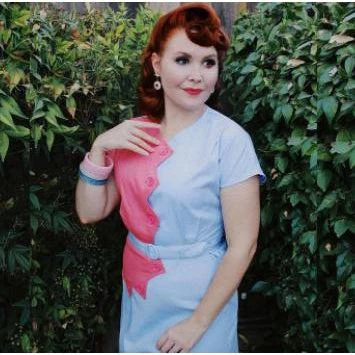 SKU: star-struck-7677084893428 Categories: Dresses, Shop By Brand, StarStruck, Women's Apparel Tags: 1940s, 40s dress, 40s reproduction, Cf-size-m, Cf-size-s, Light blue, Pink, Retro