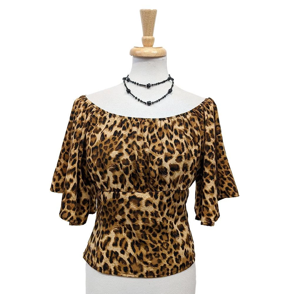 SKU: the-oblong-box-shop-6869482733735 Categories: Shop By Brand, The Oblong Box Shop, Tops & Tees, Women's Apparel Tags: Blouse, Cf-size-2x, Flared arm, Leopard print, Off shoulder, Peasant blouse, Retro, Victoria