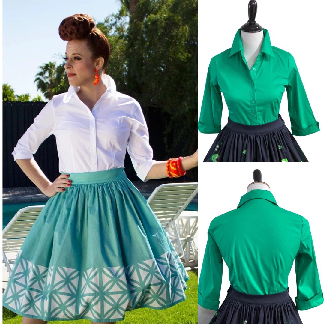 SKU: the-oblong-box-shop-6869420736679 Categories: Shop By Brand, The Oblong Box Shop, Tops & Tees, Women's Apparel Tags: Button up, Collared shirt, Essential, Green, Pinup, Pinup blouse, Pinupbasics, TOBS