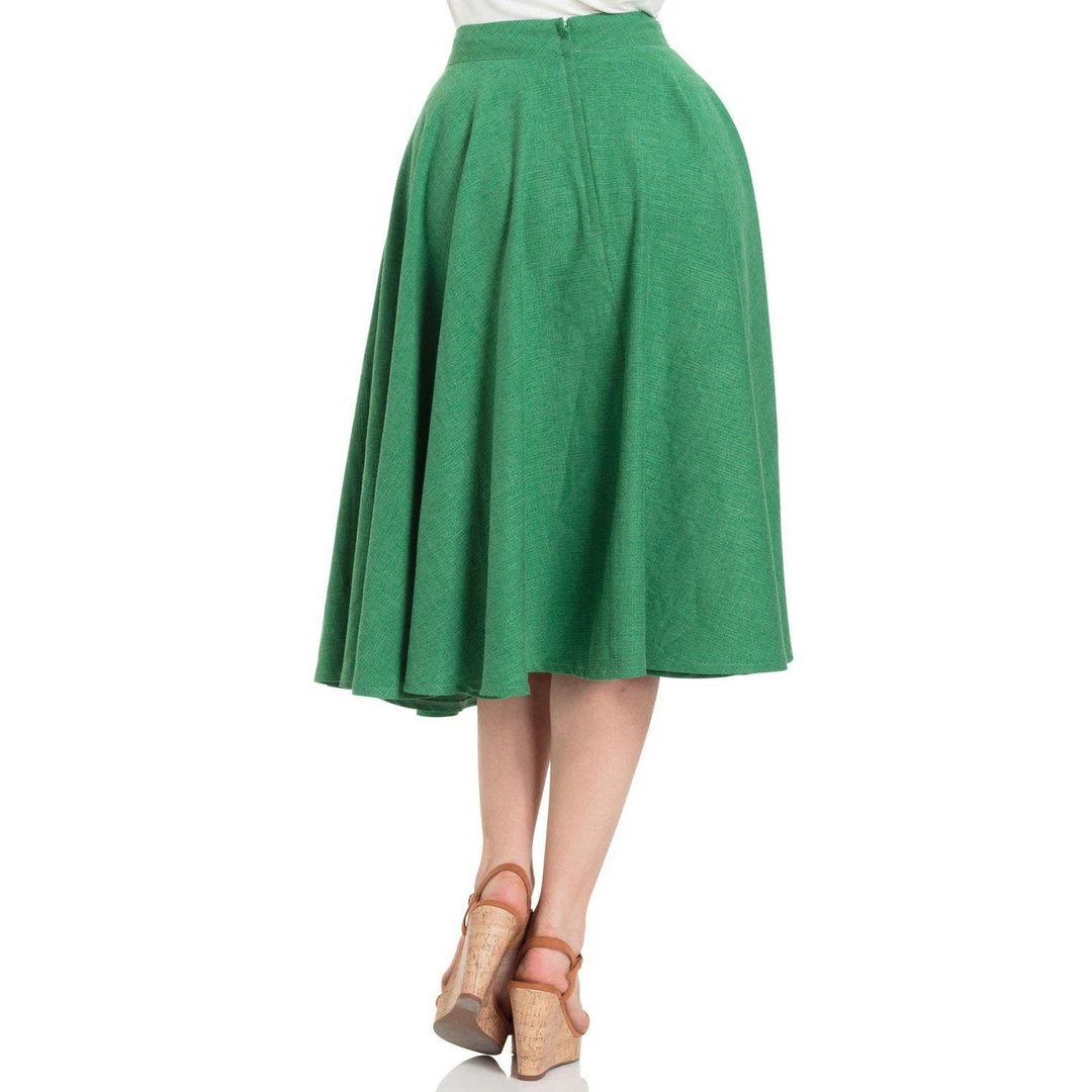 Sandy is a flawlessly flared skirt that falls beautifully on the body to create that vintage silhouette we so adore! This emerald green flared skirt has side pockets and an invisible zip on the back.