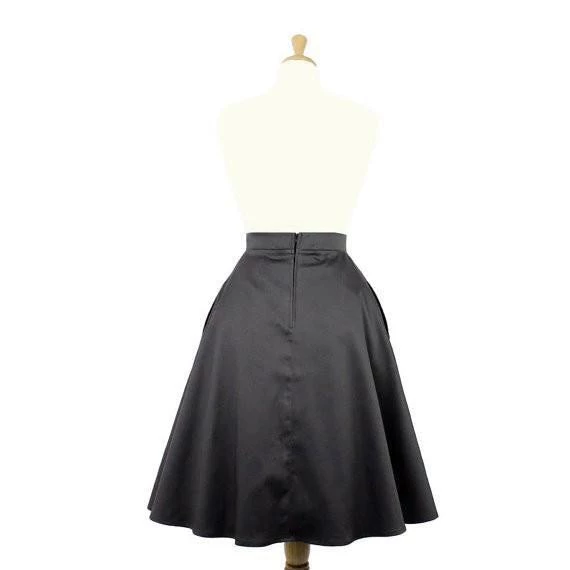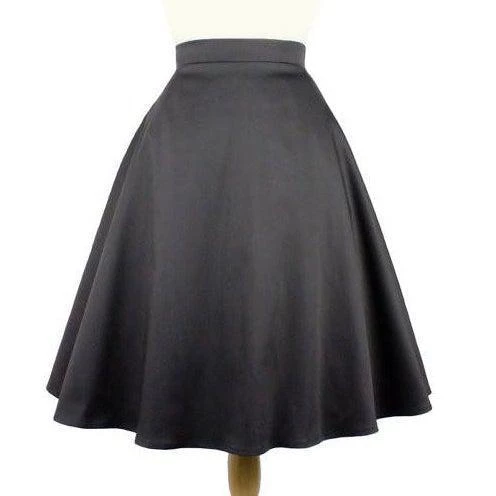 This elegant flowy circle skirt is the perfect basic to elevate your pinup & rockabilly wardrobe. It’s the perfect length for twirling, with or without a petticoat, and has pockets to keep your essentials close at hand. Made in the USA!