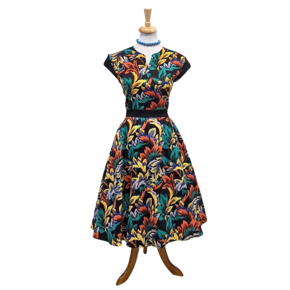 This gorgeous Black Hawaiian Print Swing Dress from Orchid Bloom is perfect for your next luau or just your regular summer days! Zips up the back and has POCKETS!