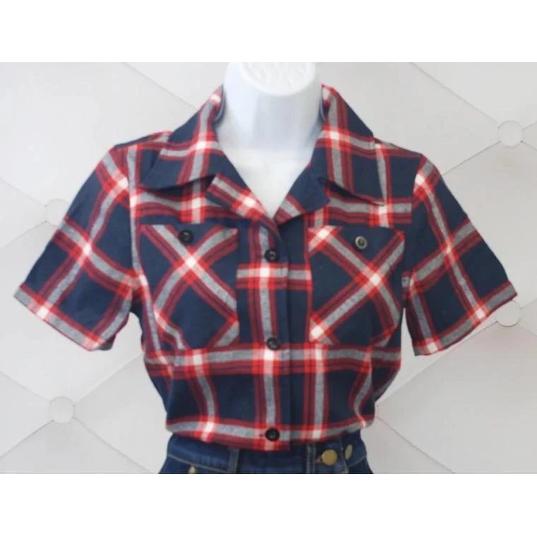 Just like the original 1940s Work Blouse, this top is a red and blue checked beauty from Astro Bettie. The short sleeved, collared shirt has two front patch pockets and utility buttons up the front. Wear it with Reproduction Button Jeans and tie a headscarf on for a complete retro look! Â